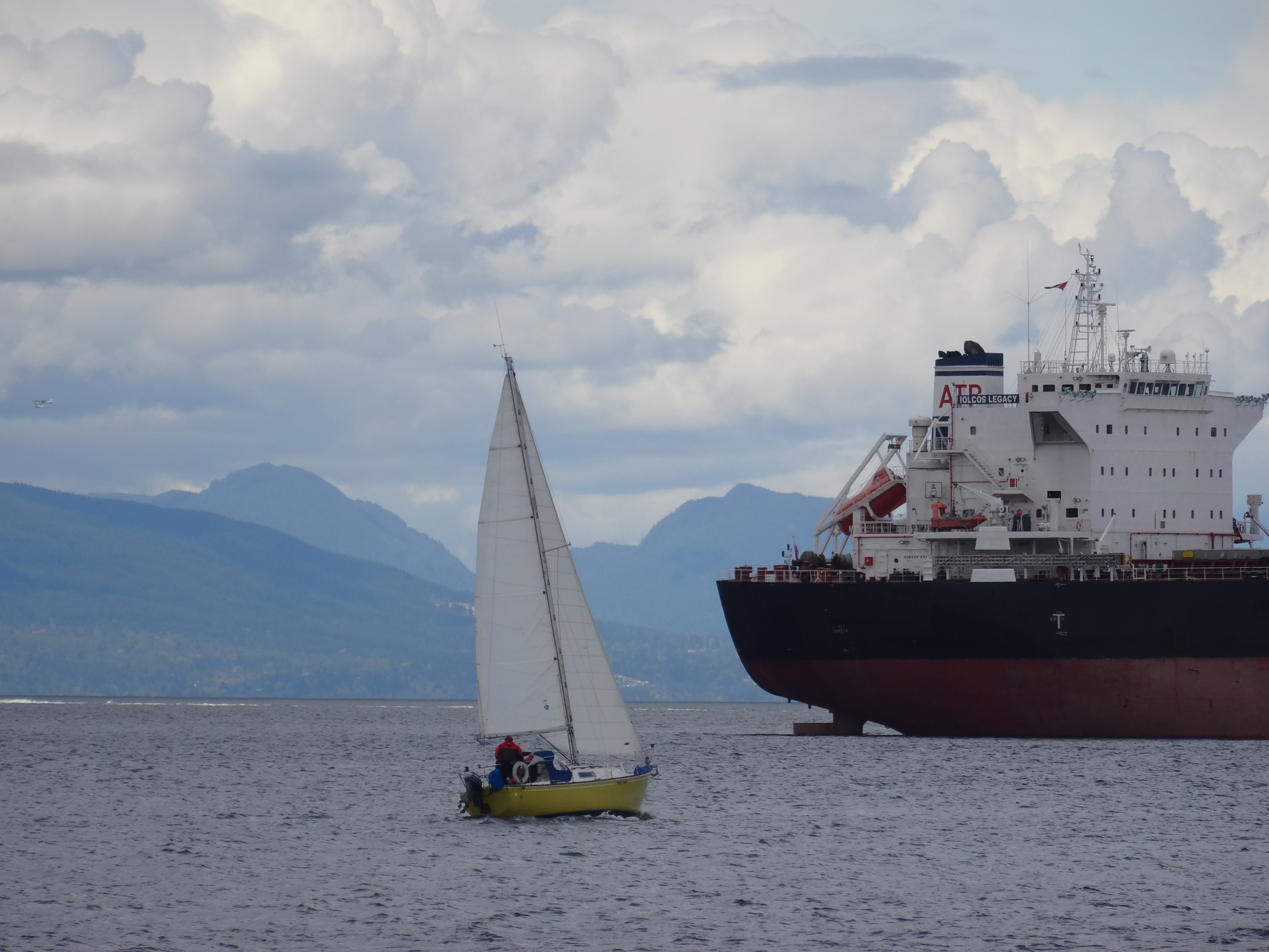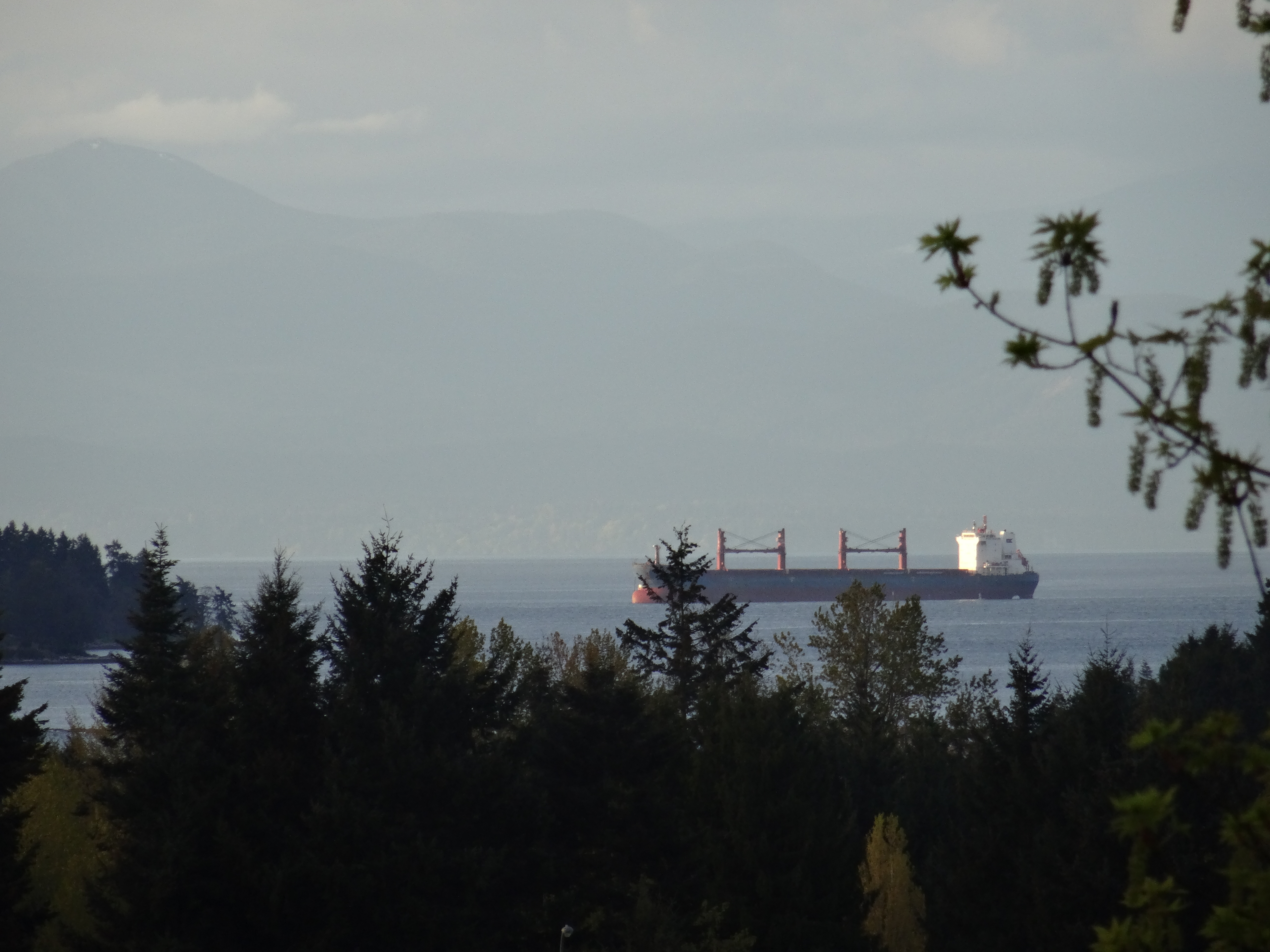 Remember that Freighter off in the distance in the view from dining room window, here a sailboat sails past it and so does our ferry on the way to Gabriola Island.