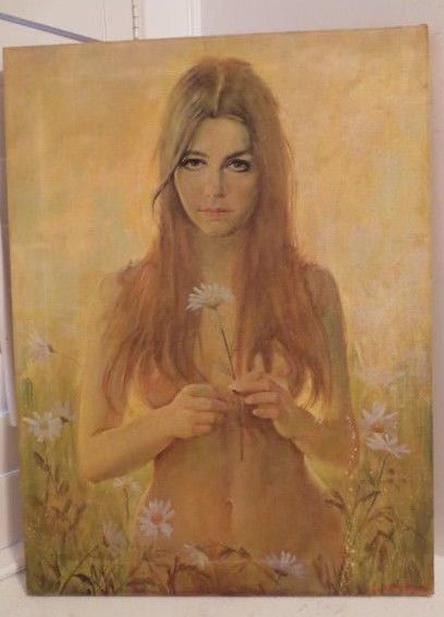 Last week, a framed version of this print from a 1960’s painting entitled, “Flower Child” came into the little vintage shop where I work. I noticed her hanging on the wall the minute I came in for my first shift of the week. It was her expression that got me, that slightly raised eyebrow. What was she thinking?