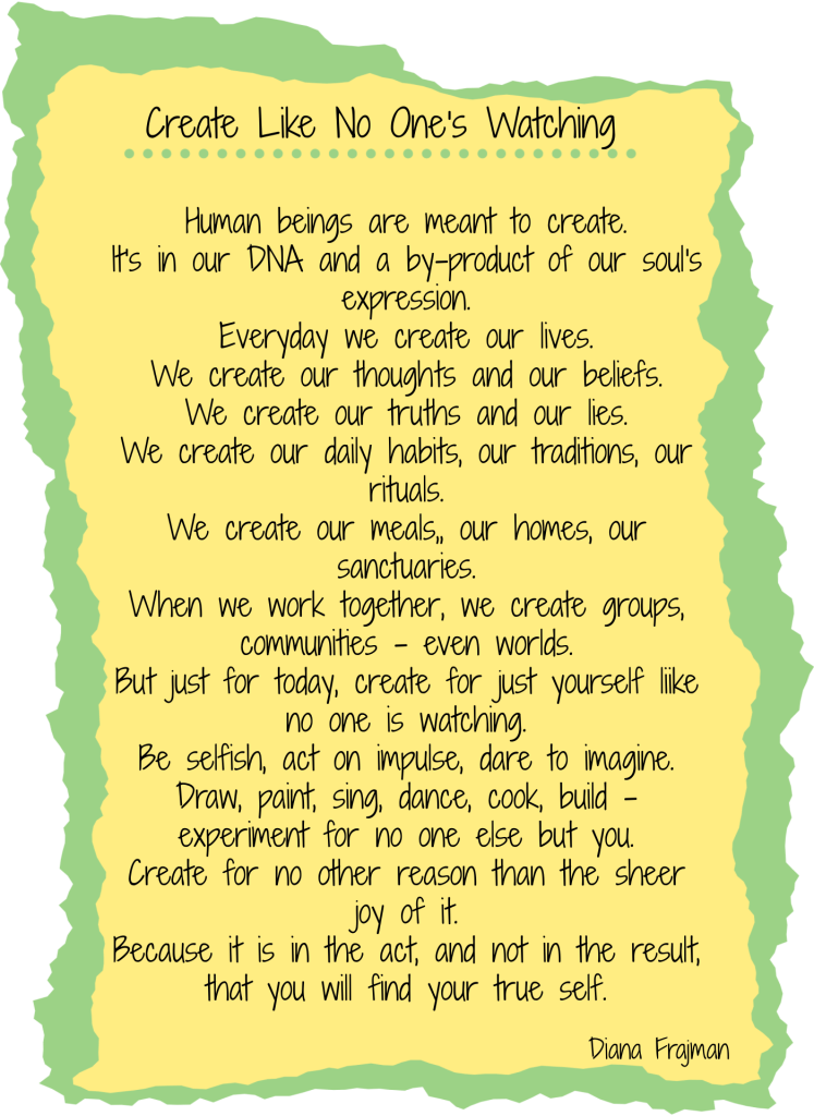 But here is the most important realization that I’ve received from the rebirth of my creativity, an even deeper joy in me than I had before I started to create – and I’m a pretty joyful crone! My soul is singing once again. Actually, so am I, singing that is, and while I still remember the words to my favourite classic albums and can belt out a tune with gusto, there won’t be any Karaoke competitions in my future.